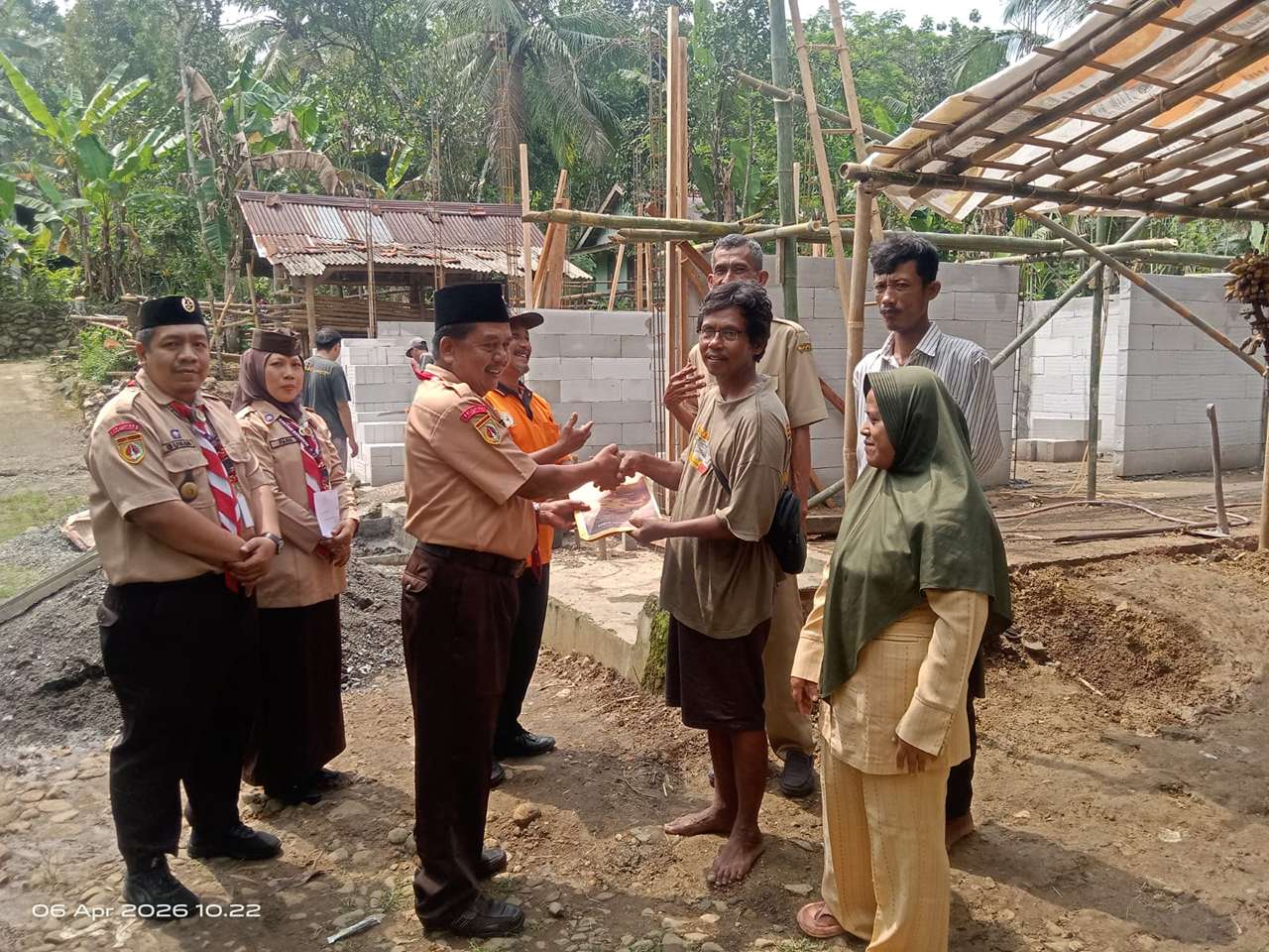 Gerakan Pramuka Kwartir Ranting Somagede serahkan bantuan Bumbung Kemanusiaan kepada Korban Kebakaran Didesa Somagede. Kegiatan ini berlangsung pada Senin, 6 April 2026 di Rumah Bapak Saliman Somagede, RT 03 / RW 05 Kecamatan Somagede.